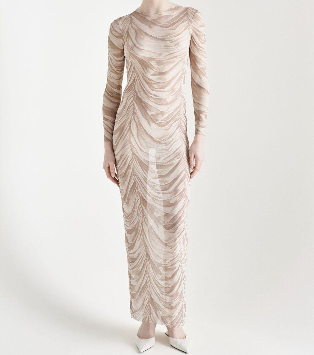 PRINTED BEIGE MESH DRESS