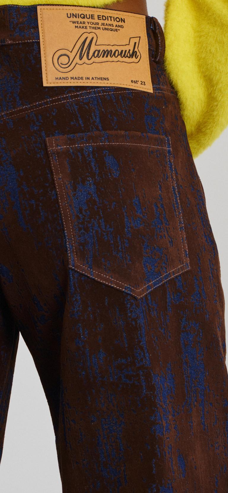 - Τζιν παντελόνι διακοσμημένο με κοντοκουρεμένο βελούδο